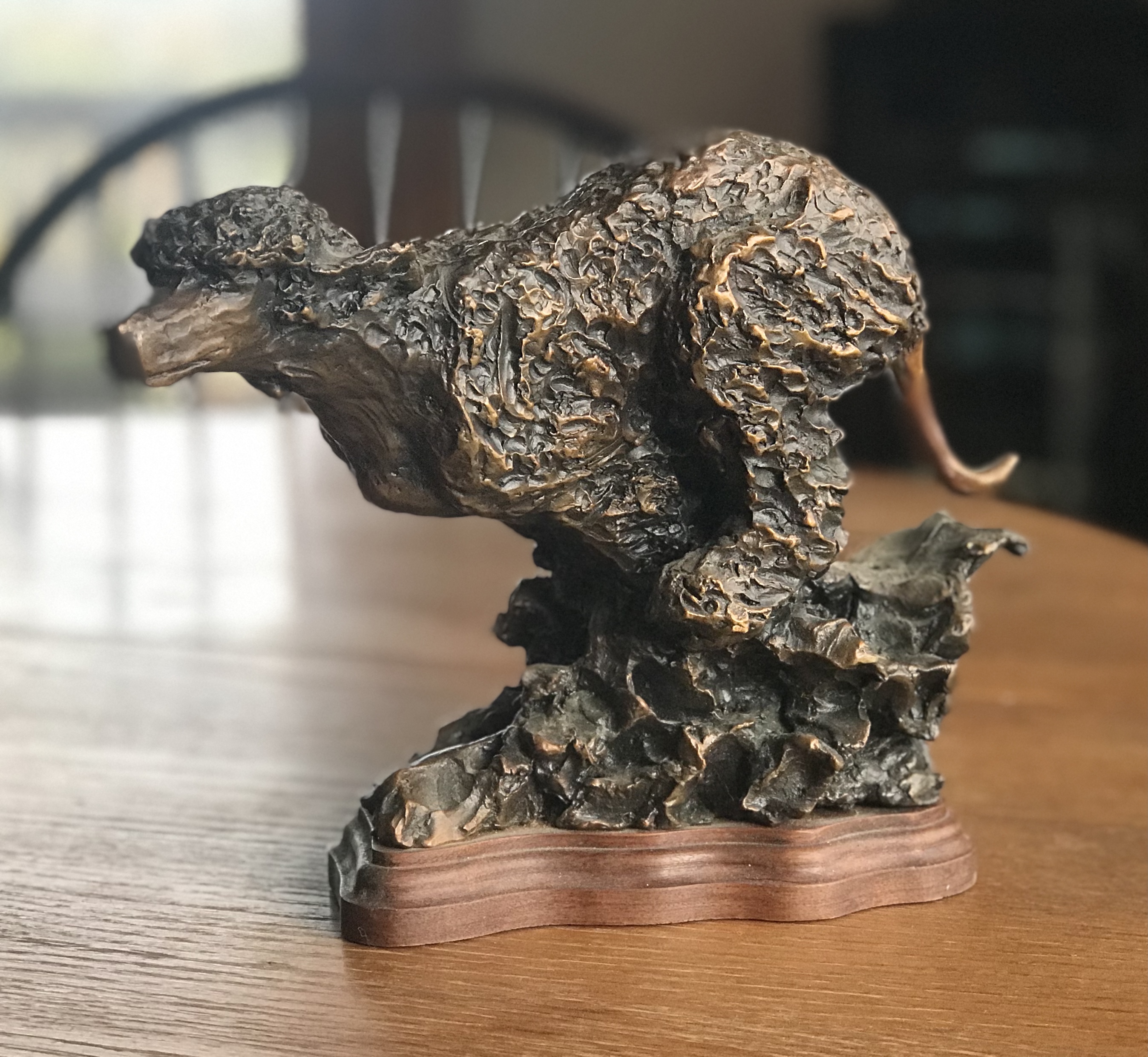 Limited edition bronze captures the spirit and athleticism of the Irish Water Spaniel. Approximately 9 inches tall. Price does not include shipping.